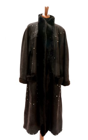 Fourures. Cappotto di montone color cioccolato con applicazione di borchie in metallo (tg. 42/44) (segni d'uso)