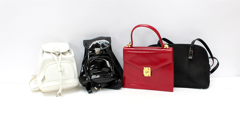GUCCI, SERGO ROSSI e anonimoLotto di due borse e due zainetti in materiali,...