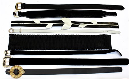 Lotto di otto cinture/fasce di forme, materiali e dimensioni differenti, tutte tra il bianco e il nero (lievi difetti)