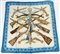 Foulard in seta "Diane", Henri de Linarès 1972 su fondo bianco, bordo azzurro cielo (difetti e scoloriture)