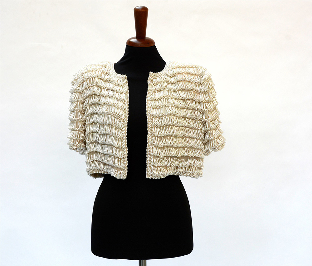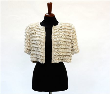 Bolero a mezza manica color crème con perline a cascata (tg. 40/42) (lievi segni d'uso)