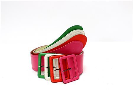 Lotto di quattro cinture alte in pelle di diversi colori (difetti e segni d'uso)