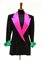 Black woolen jacket with fuschia and emerald green silk lapels (tg. 40) (defects)