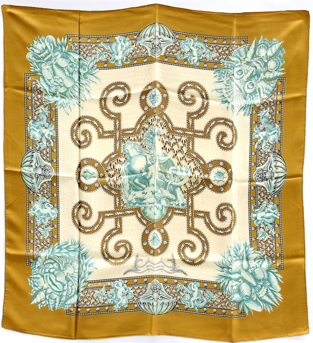 HERMÈS Foulard in seta "Grotte de Versailles", Maurice Tranchant 1969, verde...