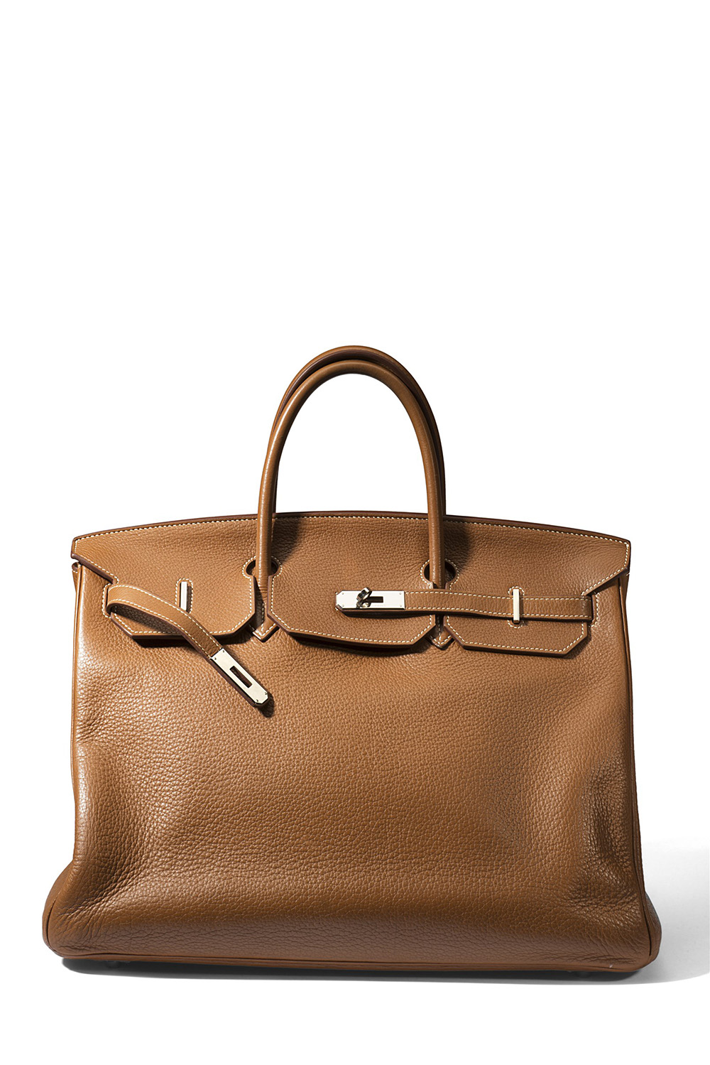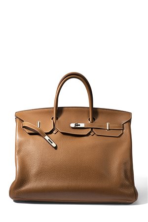 Borsa Birkin in pelle Clemence color cognac, inserti in palladio. Fattura recente emessa da Hermès per pulitura (cm 43)