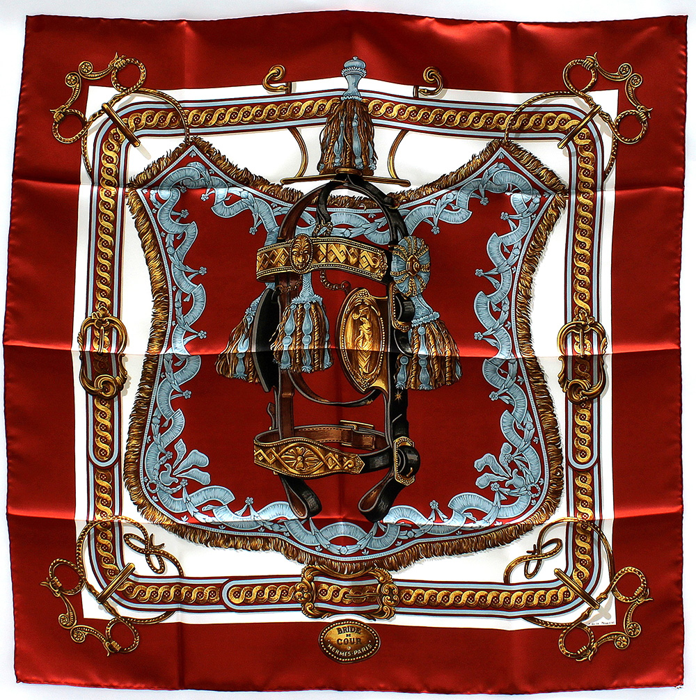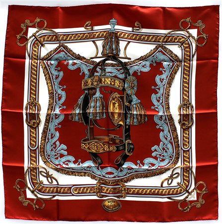 HERMÈS Foulard in seta "Brides de Cour", Françoise de la Perriere 1969 nei...