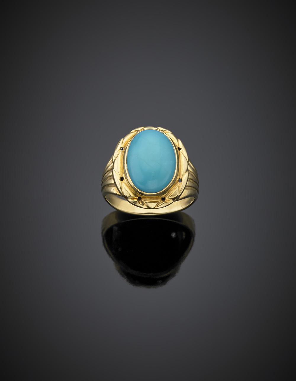 Oval cabochon turquoise reconstructed yellow gold ring, g 8.10 size 20/60.