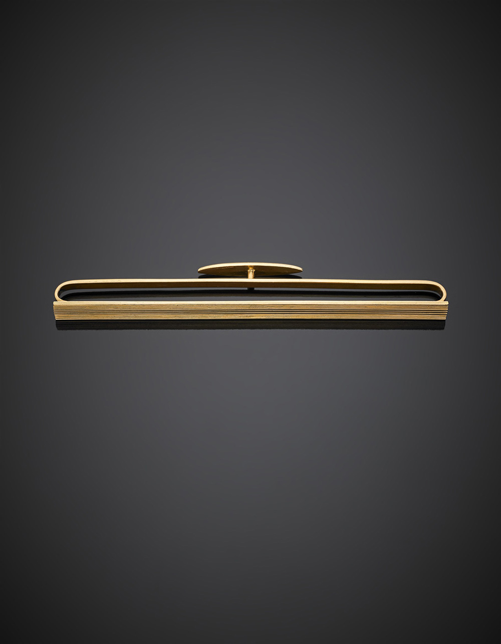 Yellow grooved gold tie bar, g 6.50, length cm 7 circa. Marked 750-78 VI BREV DEP.
