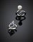 Due anelli in acciaio e oro bianco a contrarié con due perle il primo e con...