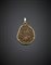 Pendente in oro giallo con quarzo microcristallino fumè, g 5,33, lungh. cm 3,80 circa.