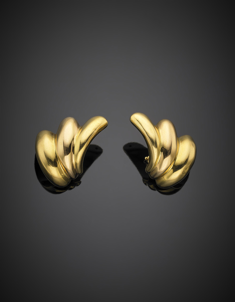 Orecchini a lobo in oro giallo a nervature, g 12,05. (lievi difetti)-ENYellow...