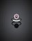 Anello in oro bianco con rubino ovale centrale di ct. 0,90 circa, contornato da diamanti, g 3,14 misura 16/56.