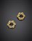 Due spille a ghirlanda in oro giallo, perle, zaffiri e smeraldi, g 11,09, diam. cm 2,70.