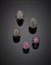 Gruppo di cinque anelli in oro e argento con corindoni sintetici e non,...