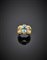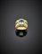 Anello in oro giallo con topazio azzurro ovale di ct. 4,16 circa, costolato...