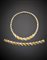 Tri-coloured partly glazed gold jewellery set comprising tapering necklace and bracelet, necklace length cm 45 bracelet cm 19 circa, in all g 65.83.