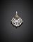 Pendente in oro rosa, quarzo ialino rotondo a nascondere un fiocco in diamanti, g 7,18, lungh. cm 3,30 circa.