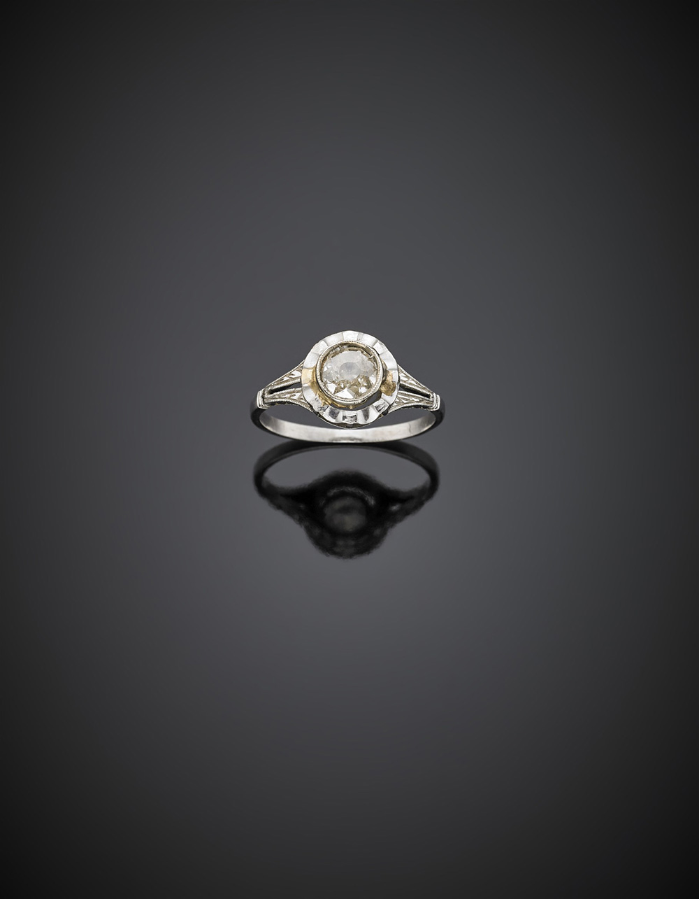 Anello in platino con diamante solitario di ct. 0,50 circa, g 3,01 misura 11/51.