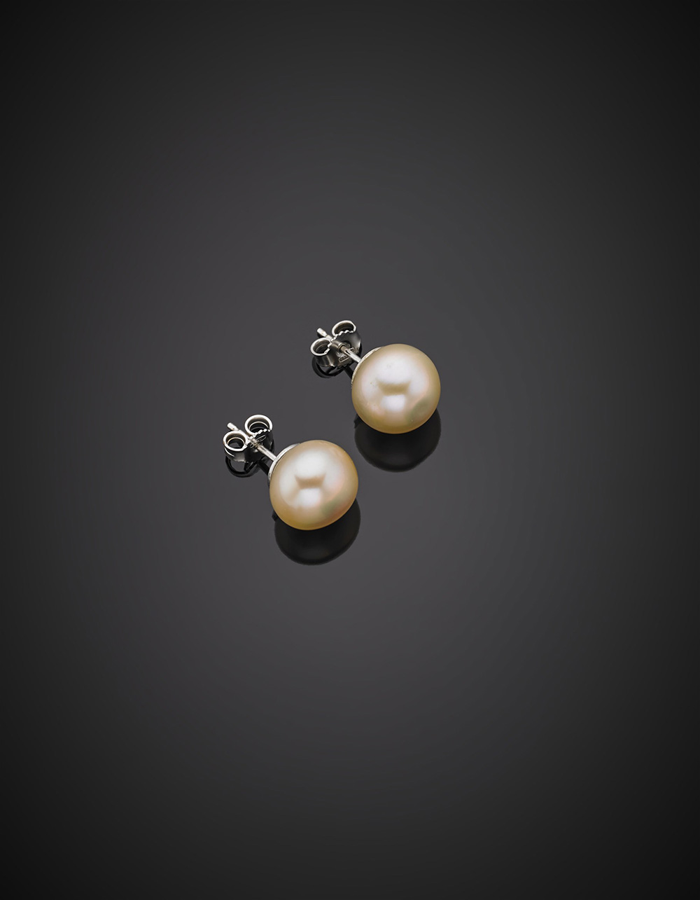 Orecchini a lobo con perle a sfumatura golden rosata di mm.11 circa, g 4,75.