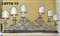 CANDELABRO A 6 LUCI IN METALLO SBALZATO E ARGENTATO SORMONTATO DA DUE PUTTI...