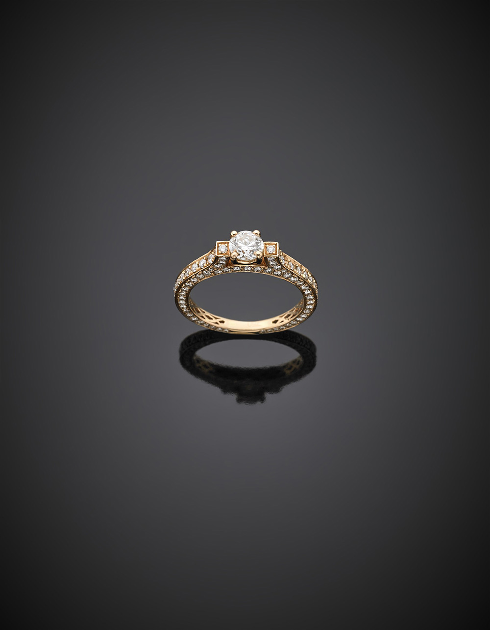 Round ct. 0.45 circa diamond and pink gold shaped ring, diamonds on the stem, g 3.01 size 14/54.