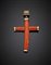 Croce in corallo rosso arancione rifinita in oro rosso 333/1000 in parte...