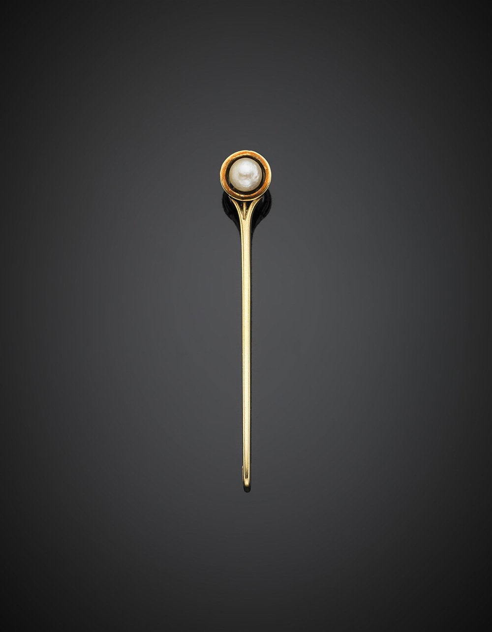 Spillone in oro giallo e mezza perla, g 3,50, lungh. cm 5,80 circa.