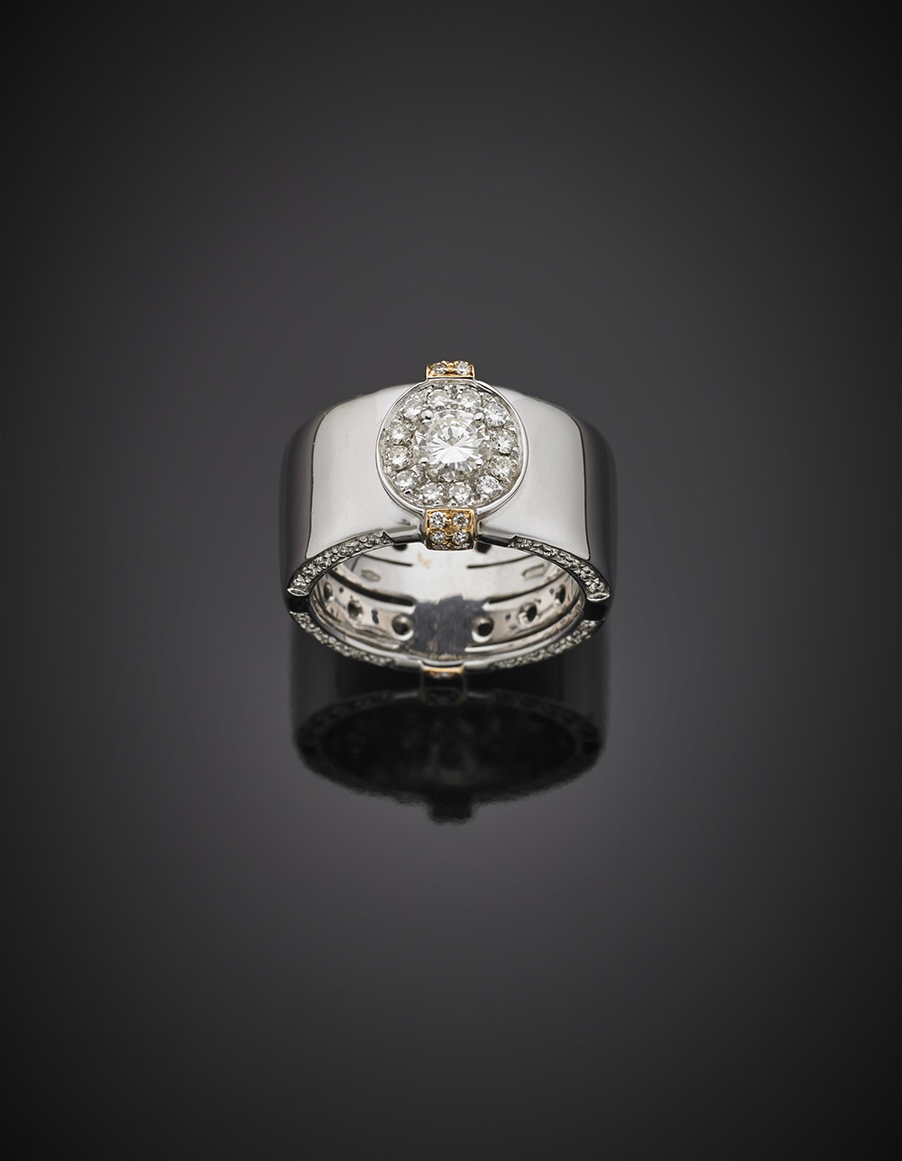 ATTILIO ZANETTIAnello a fascia in oro bianco, dettagli in oro rosa con...