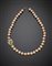 Collana in corallo rosa variegato con chiusura e centrale in oro giallo e bianco e diamanti, diam delle boule mm 11 circa, g 89,83, lungh. cm 58 circa.