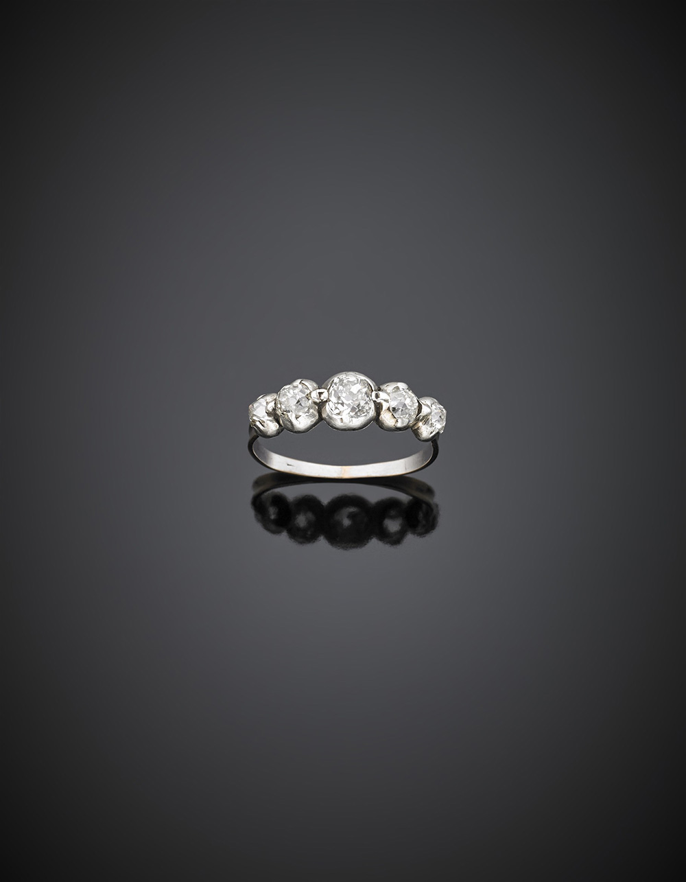 Fedina in oro giallo e argento con cinque diamanti old mine, g 1,53 misura...