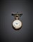 Broche in oro giallo e argento a guisa di corona con orologio pendente tutto...