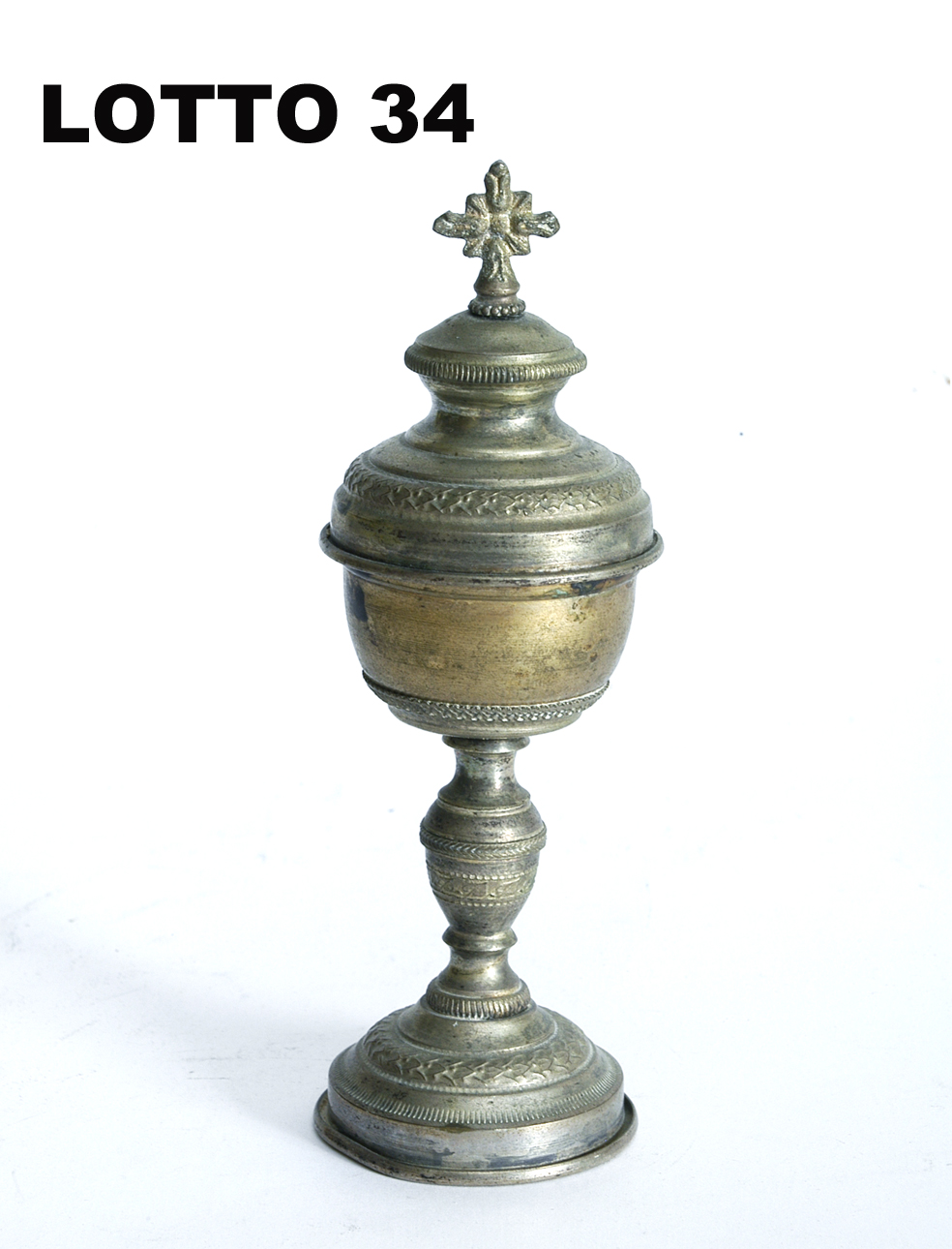 Lotto 34 | AMPOLLINA RELIGIOSA IN METALLO ARGENTATO ITALIA FINE DEL XIX° SEC.