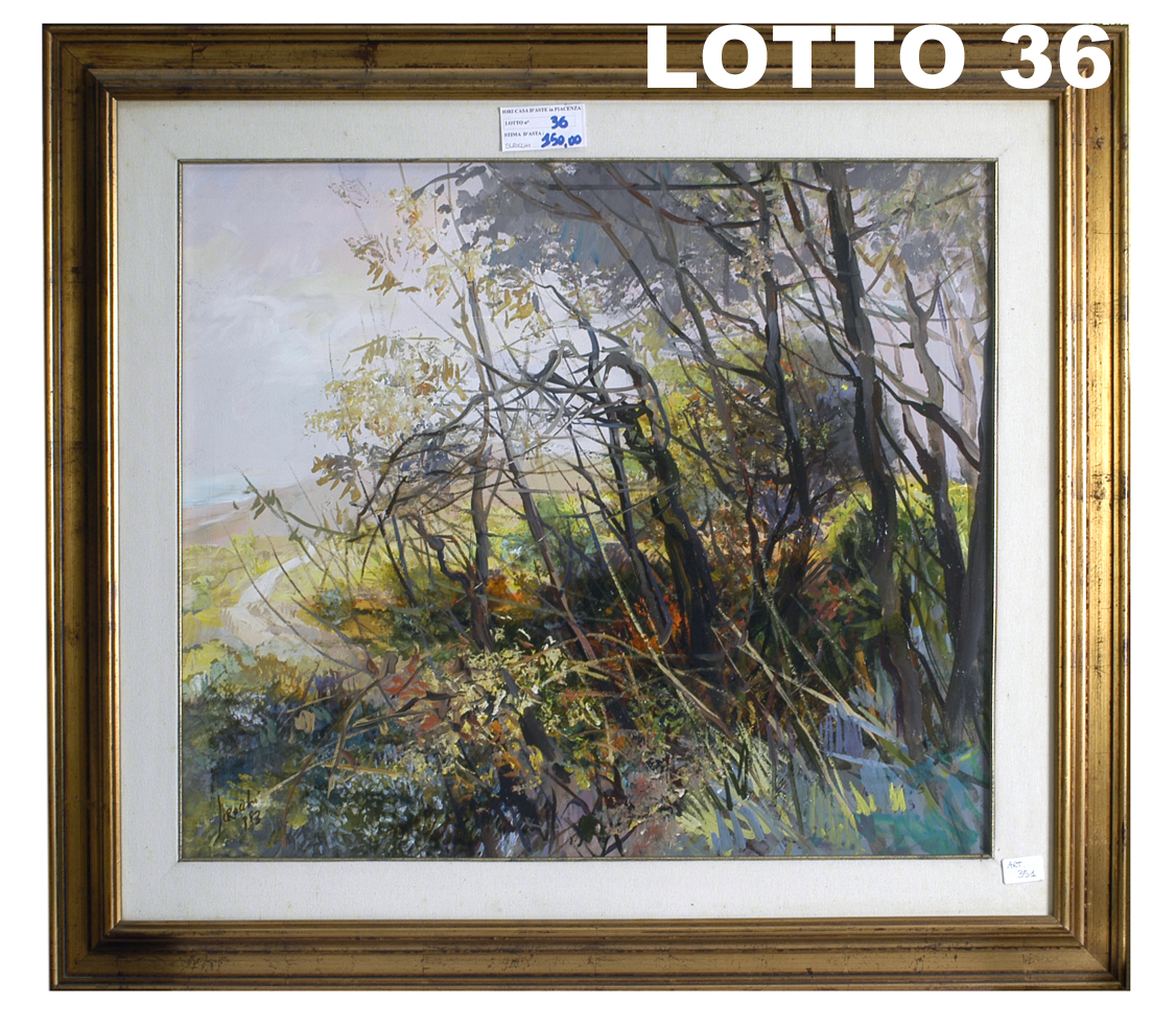 Lotto 36 | CARLO SCROCCHI (1938) DIPINTO A OLIO RAFF. PAESAGGIO CON BOSCAGLIA MIS. 60 X 70