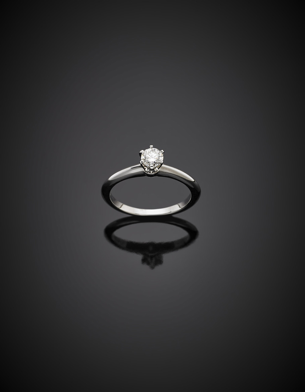 Round ct. 0.30 circa diamond solitaire platinum ring, g 4.48 size 11/51. Signed Tiffany & Co.