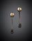 Round black diamond red gold pendant earrings, suspending two briolettes, g 7, length cm 5.50 circa.