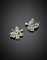 Orecchini/spille a guisa di fiori in oro bianco e diamanti, g 25,27, largh. cm 3,40 circa. (mancanze)