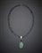 Collier in platino e zaffiri con pendente in oro giallo, zaffiro ovale cabochon e smeraldo a goccia scolpito di ct. 60 circa g 40,17, lungh. cm 68 circa. (difetti)