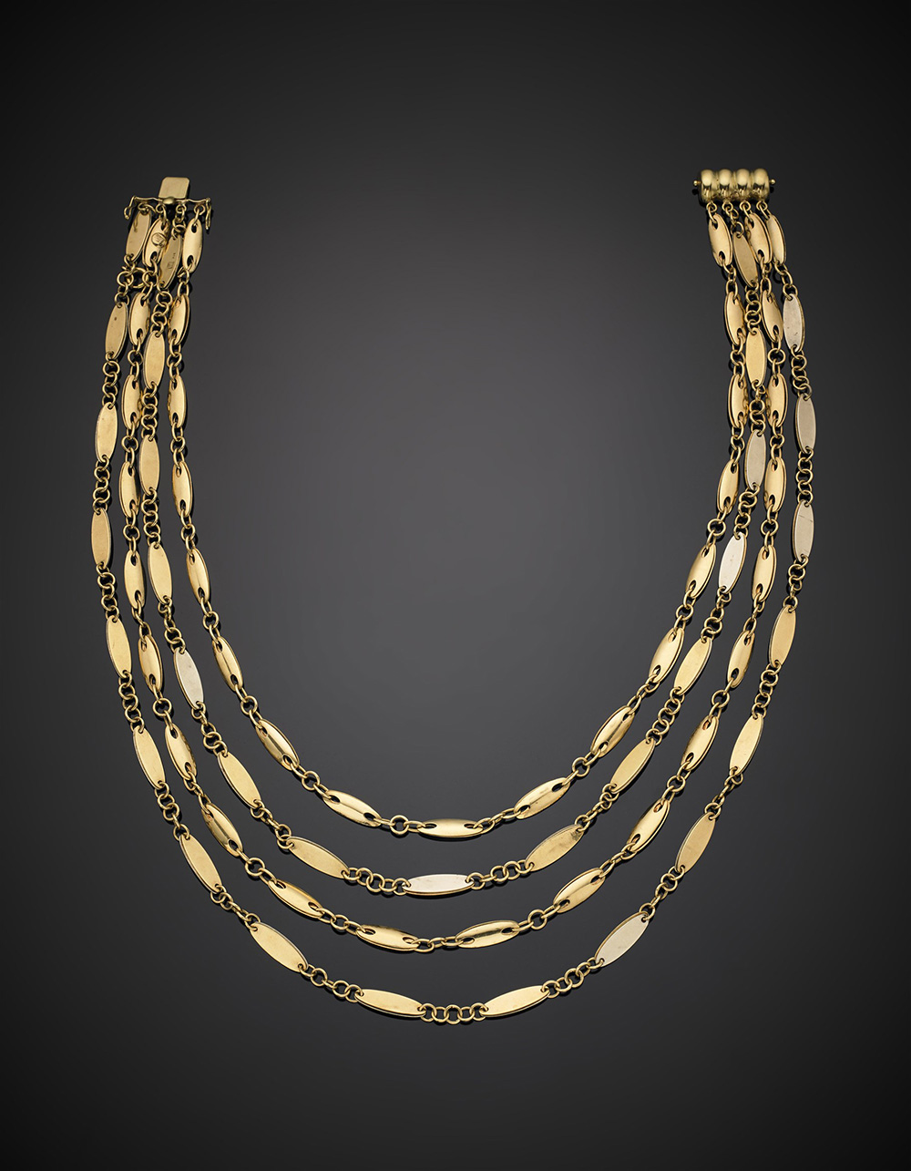 CUSICollana a quattro giri di catene e losanghe in oro giallo e bianco,...