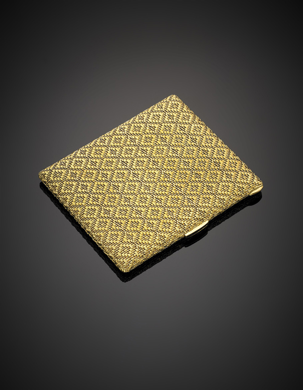 *Yellow gold woven cigarette case, blue gem on the clasp, cm 11x9,4x1,1 circa, g 187.59.