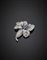 Spilla in oro bianco con diamanti rotondi e zaffiri calibré a formare un giglio, g 12,17, lungh. cm 3,70 circa.