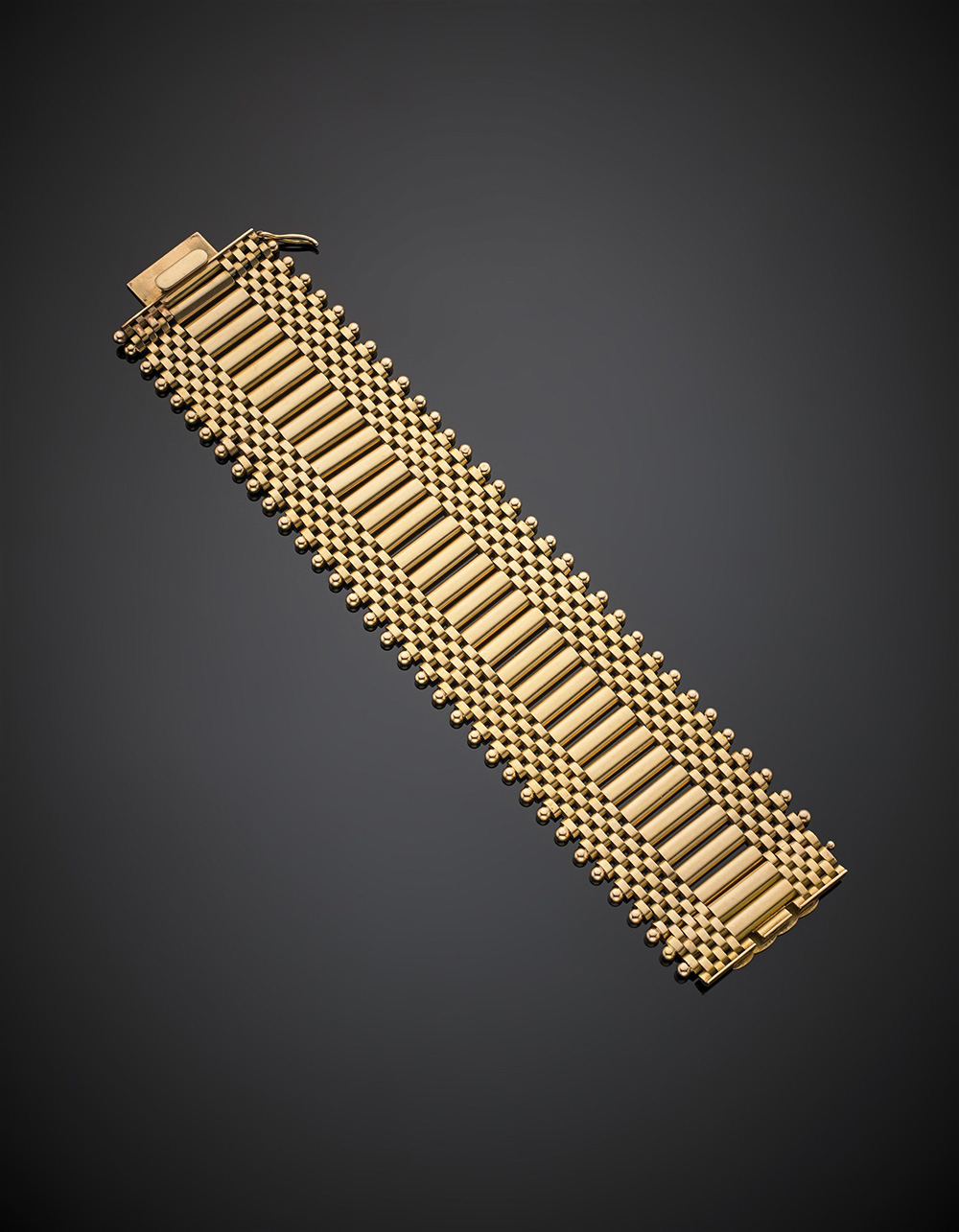 Red gold woven bracelet, with two spare mesh, g 94.03, length cm 18.80, h cm 4.10 circa. (losses)