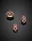 Demi-parure orecchini ed anello in oro giallo, con motivo a rete, diamanti e rubini ovali (diamante mancante) , complessivi g 21,44 misura 13/53.