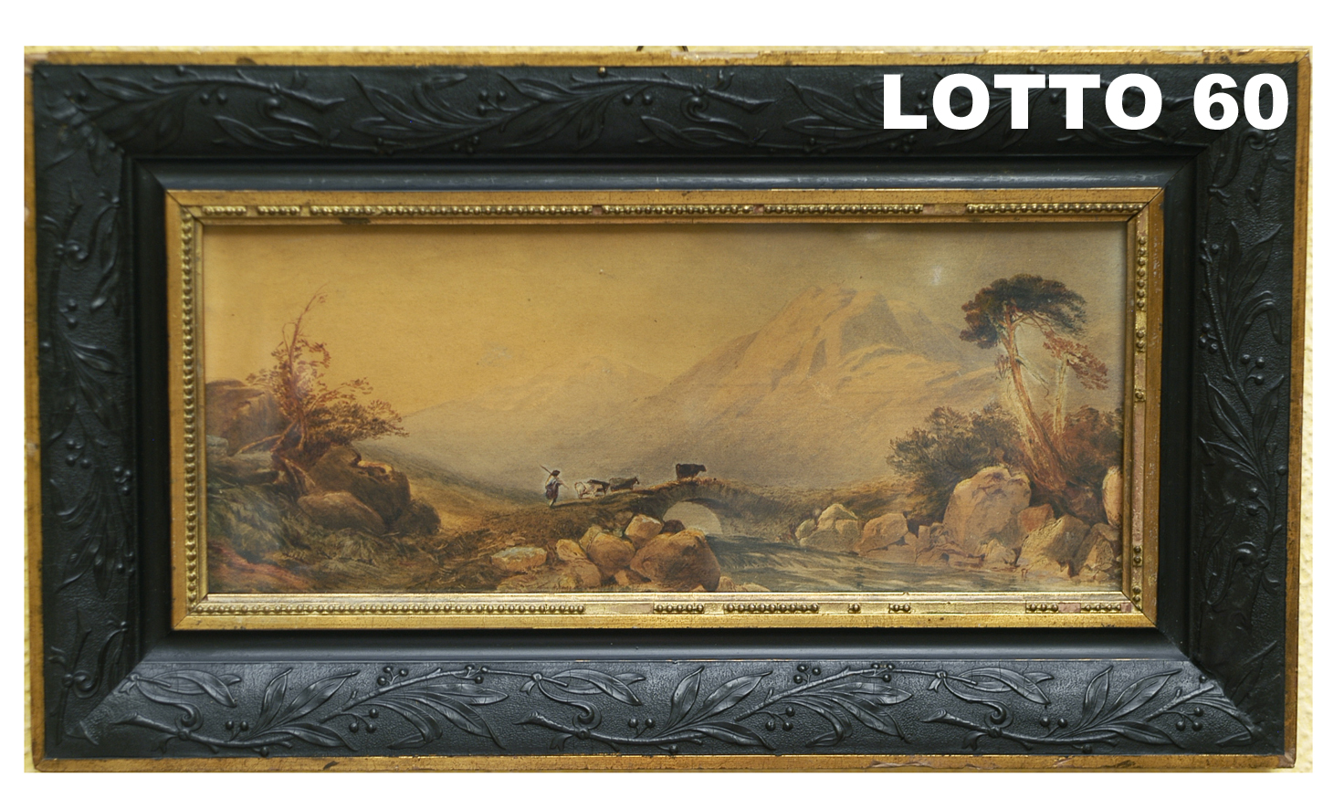 Lotto 60 | ITALIA META' DEL XIX° SEC. ACQUERELLO SU CARTONE RAFF. PAESAGGIO CON PASTORE...