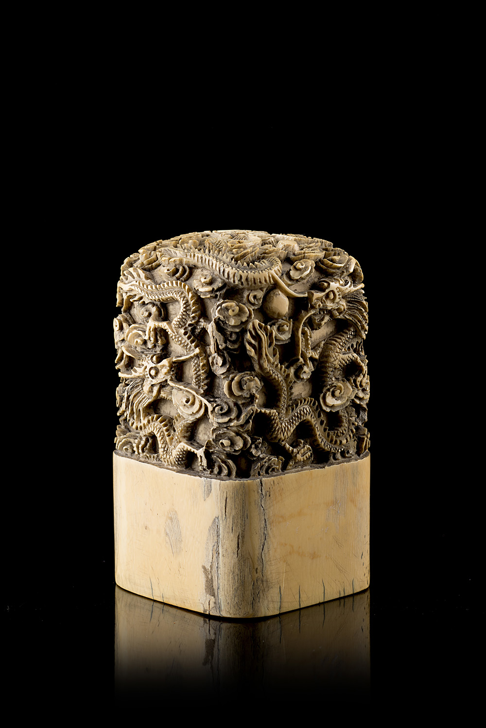 Lotto 37 | Sigillo in avorio dalla forma squadrata, scolpito con cinque dragoni, marchio...