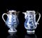 Due piccole brocche in porcellana bianca e blu, decorate con figure femminili e motivi floreali, con montatura in argento. La porcellana,