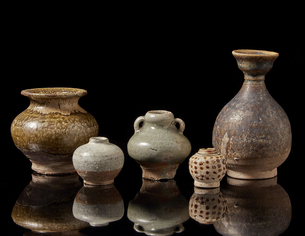 Cinque vasetti monocromi in terracotta smaltata di manifattura cinese