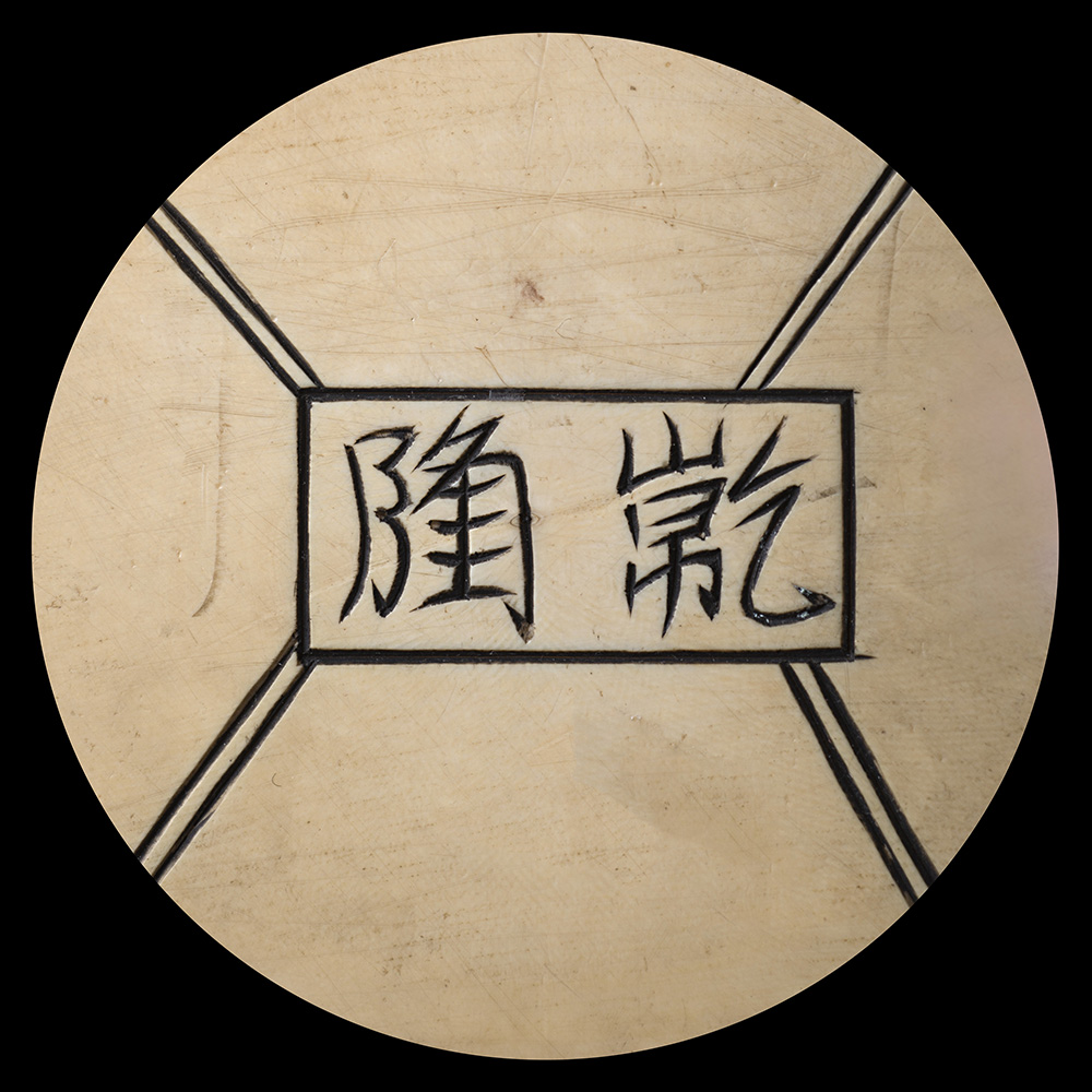 Scultura in avorio raffigurante Guanyin, marchio apocrifo alla base (difetti)
