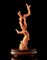 Ramo in corallo scolpito con dama e rami di peonia e fenici, base in legno