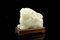 Leone buddhista in giada celadon pallido, con base in legno (lievi...