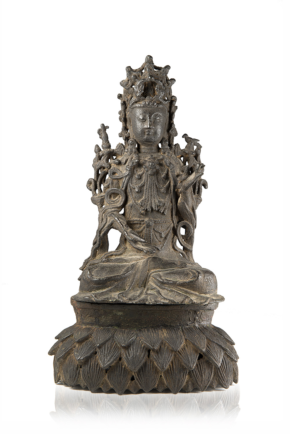 A bronze model of Guanyin on a lotus base (defects and restorations)